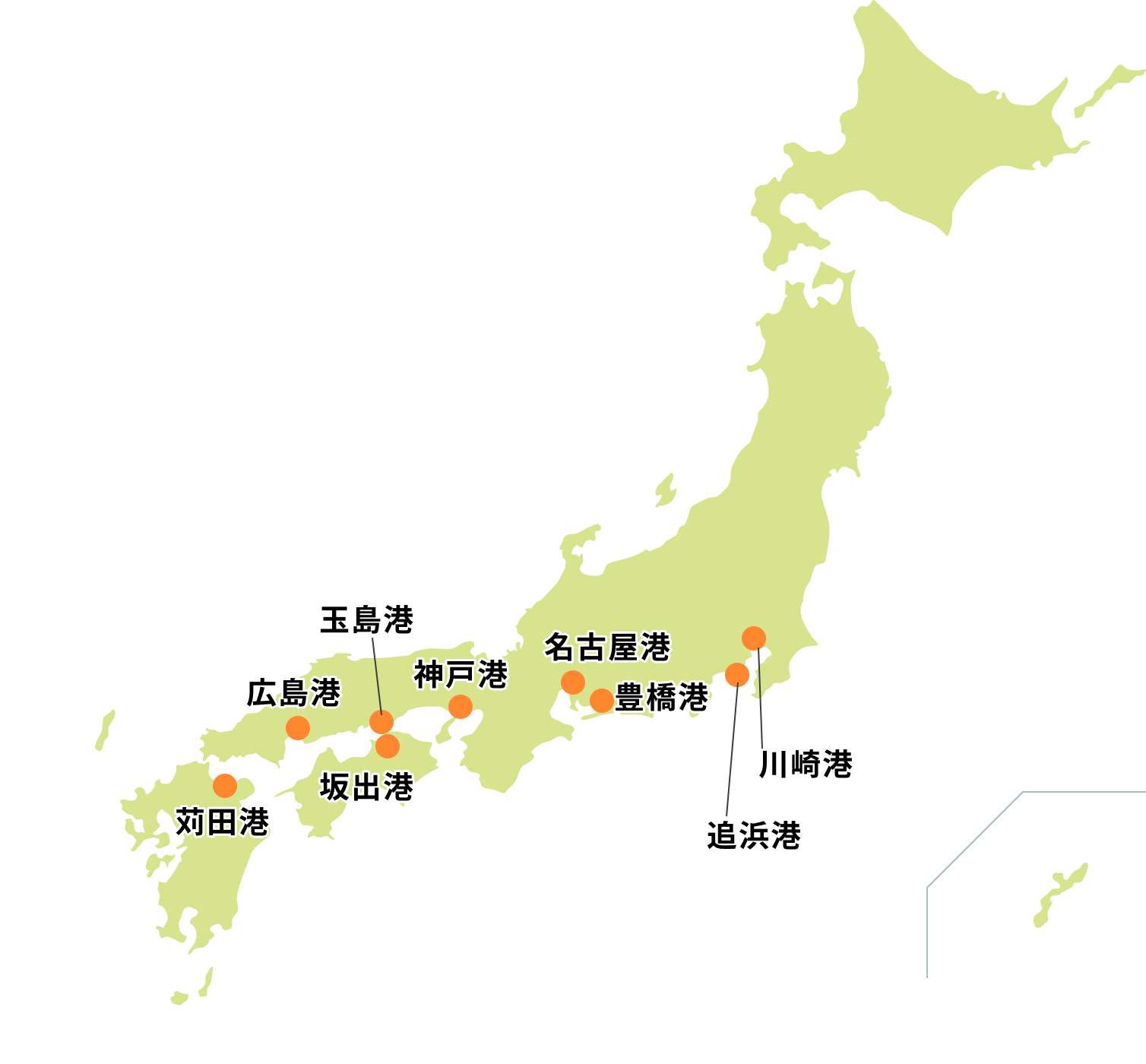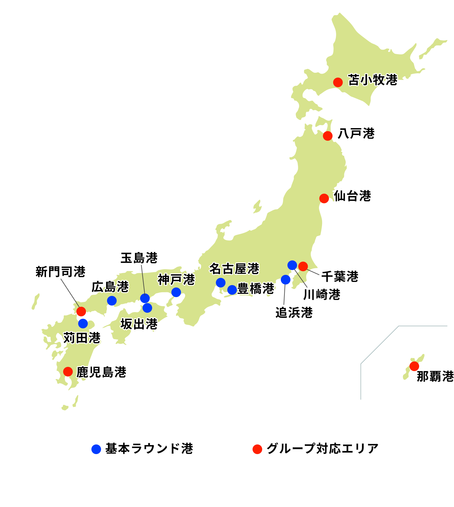 また、西日本方面の基本航路だけでなく、グループ間のネットワークにより北は北海道から南は沖縄まで太平洋岸一帯をカバーし、日本全国に輸送網を持ちます。